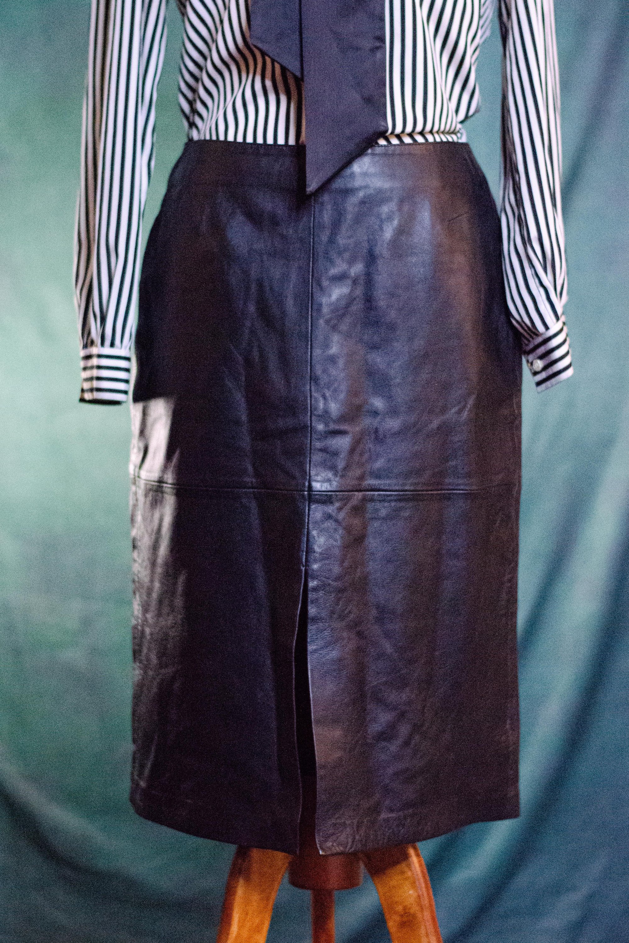 Vintage Cache' Leather Double Slit Midi Skirt